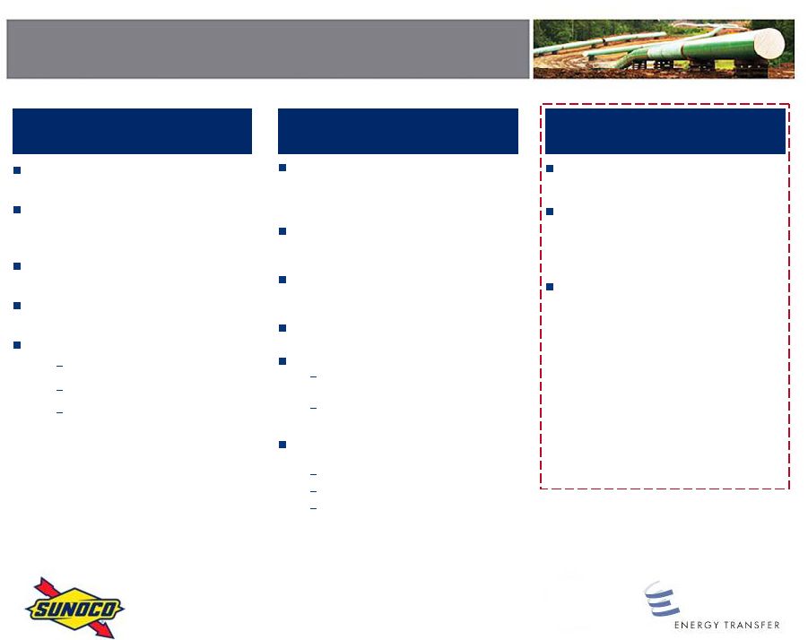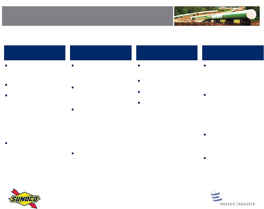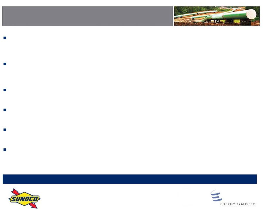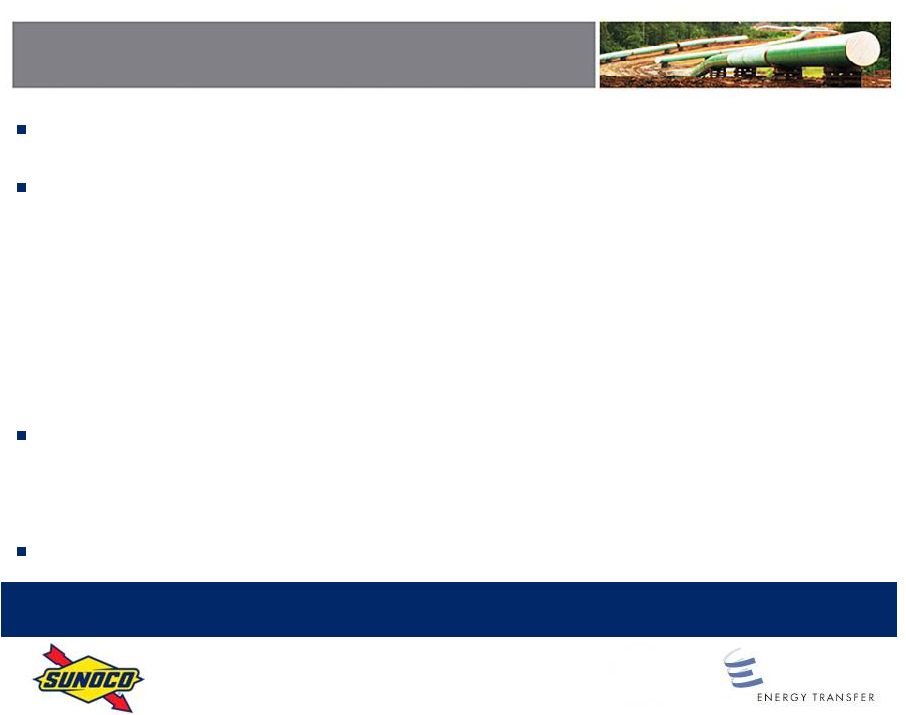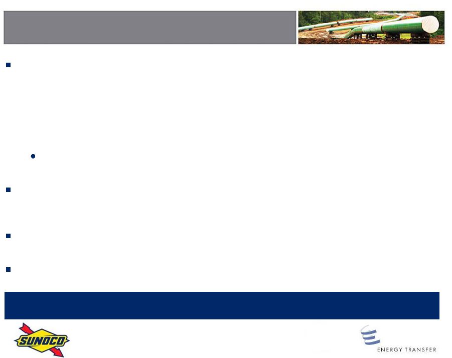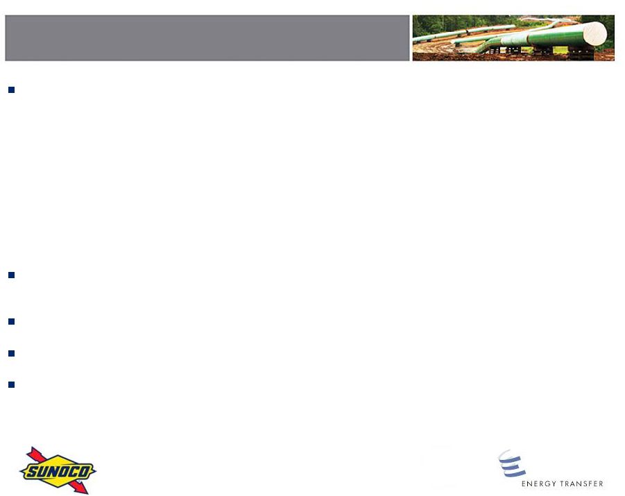 This transaction will enable Sunocos businesses to realize their full potential by becoming an important part of a diversified leader in the energy industry, said Brian P. MacDonald, Sunocos president and chief executive officer. In addition, it delivers an attractive premium to our shareholders, while enabling them to participate in the future growth of the business. The combination with ETP provides substantial future value-creation opportunities for Sunoco shareholders and ETP unitholders alike.
