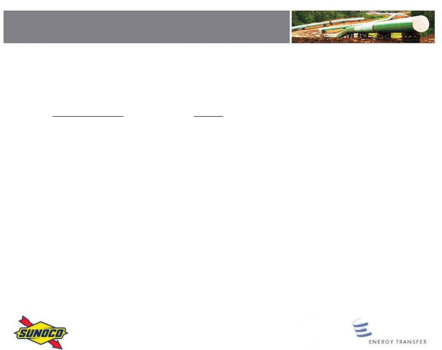 Additionally, in the press release, ETP and Sunoco announced a joint investor call for the same date at 8:30 a.m. (ET) to discuss the merger. The dial-in number for the call is (888) 390-0918 in the United States, or (415) 228-4586 outside the United States. The participant code is ETPSUN. ETP and Sunoco also expect to make a joint investor presentation concerning the merger.