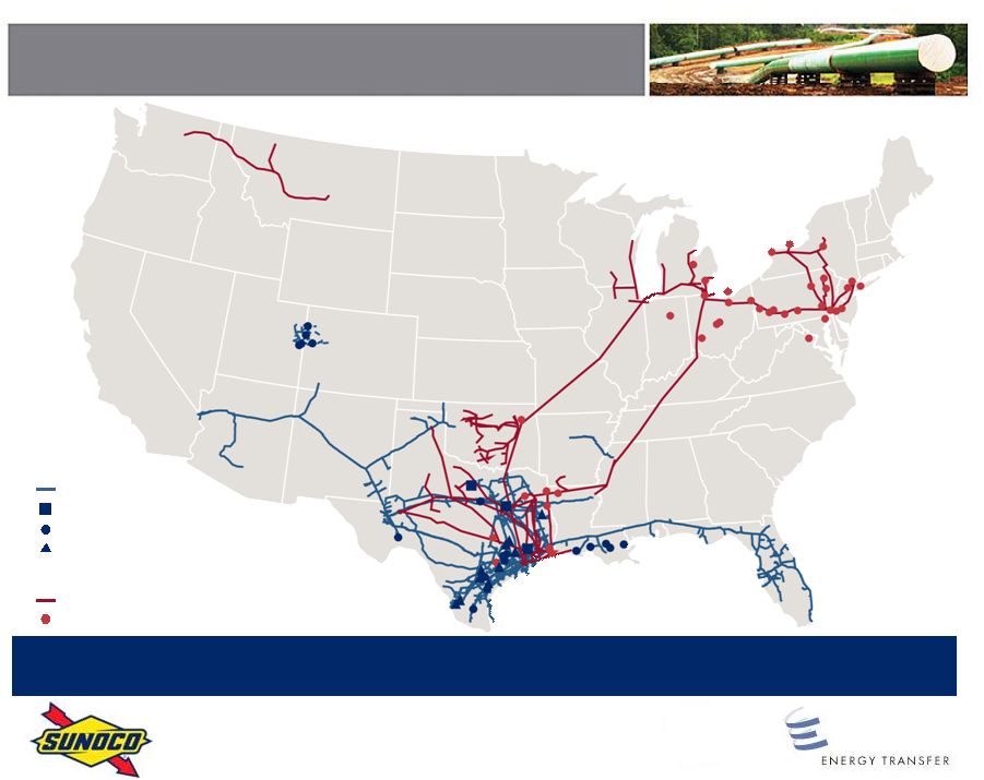 Sunoco Logistics Partners L.P. (NYSE: SXL), headquartered in Philadelphia, is a master limited partnership that owns and operates a logistics business consisting of a geographically diverse portfolio of complementary pipeline, terminalling and crude oil acquisition and marketing assets. The Refined Products Pipelines consist of approximately 2,500 miles of refined products pipelines located in the northeast, midwest and southwest United States, and equity interests in four refined products pipelines. The Crude Oil Pipelines consist of approximately 5,400 miles of crude oil pipelines, located principally in Oklahoma and Texas. The Terminal Facilities consist of approximately 42 million shell barrels of refined products and crude oil terminal capacity (including approximately 22 million shell barrels of capacity at the Nederland Terminal on the Gulf Coast of Texas and approximately 5 million shell barrels of capacity at the Eagle Point terminal on the banks of the Delaware River in New Jersey). The Crude Oil Acquisition and Marketing business involves the acquisition and marketing of crude oil and is principally conducted in Oklahoma and Texas and consists of approximately 190 crude oil transport trucks and approximately 120 crude oil truck unloading facilities.